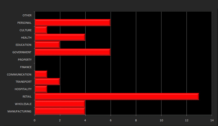 Today I want to look at the economic functions of suburban centres, as indicated by their industry composition. If a centre is specialised by industry compared to jobs in the rest of the suburbs, it suggests it has a distinct economic role. It could also mean that the benefits of agglomeration may not be especially important.
