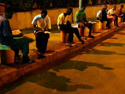The BBC reports that petrol stations, airports and even spaces under security lamps outside upmarket homes have become pockets of learning, where determined students are to be found in large numbers.
