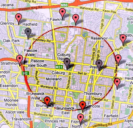 There are two existing high schools within the circle, shown in grey on the map, but they are not full-service schools. One is Coburg Senior High (co-ed, year 10 upwards) and the other is Preston Girls College (girls 7-12 only). The obvious “new junior school” solution is to expand Coburg Senior High.
