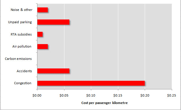 Posted: November 24, 2010 | Author: Alan Davies | Filed under: Cars & traffic | Tags: emissions, externalities, Garry Glazebrook, parking, Public transport, social cost, transit, transport modes, transport subsidy |9 CommentsThis simple but extraordinary chart (see first graphic) is from a paper written last year by one of the country’s leading transport researchers, Dr Garry Glazebrook, of Sydney’s University of Technology.