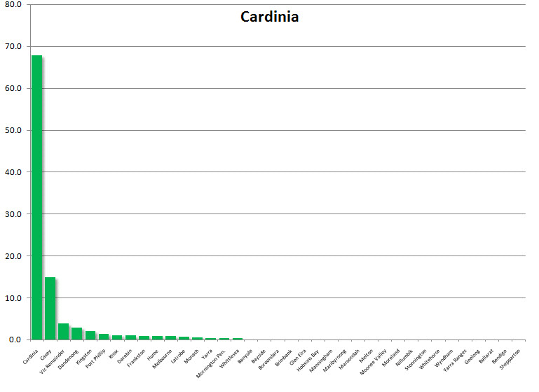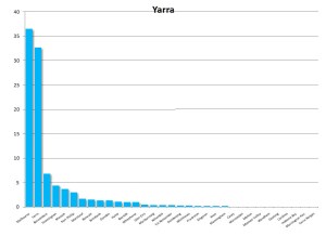 There are 31 municipalities in metropolitan Melbourne and they each display a localised pattern like the ones mentioned above. There are, in other words, 31 unique and overlapping ‘regions’. Even contiguous municipalities have very different aggregate ‘home ranges’.
