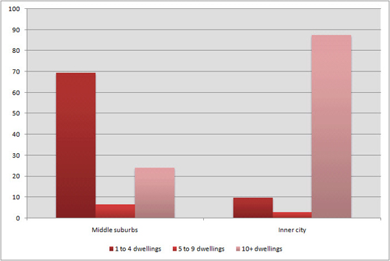 Developers don’t want to be rejected or delayed by unhappy neighbours or sent packing by councils that impose restrictive limits and conditions on development. And they need to offer housing types that are attractive to the market in that locality – not everyone who’d be inclined to live in the middle ring suburbs would want to live in an apartment.