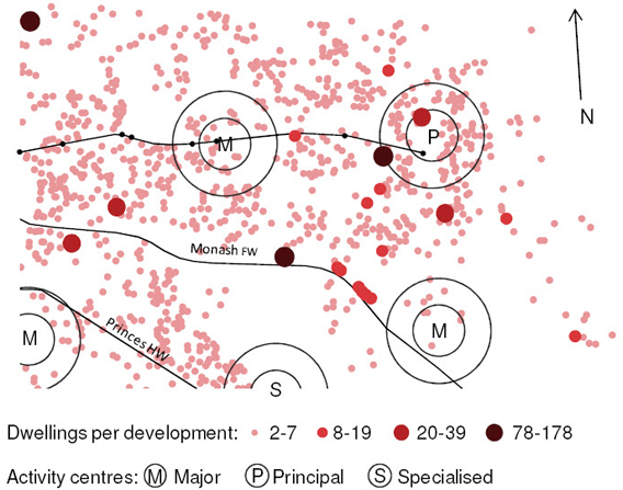 Geography of infill developments in City of Monash, 2000-2006 (source: Phan et al, 2008 - graphic via Grattan Institute)