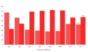 It may surprise, but most high human capital jobs – that is jobs filled by a worker with a Bachelor’s Degree or higher – are located in the suburbs. The inner city has a higher density of graduate jobs, but the sheer size of the suburban job market means that in absolute terms it has more jobs filled by graduates. These high human capital jobs are located in suburban hospitals, universities, schools, local government administration and increasingly in manufacturing and warehousing.