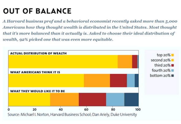Posted: February 24, 2011 | Author: Alan Davies | Filed under: Miscellaneous, Social and community | Tags: Dan Ariely, equity, Michael Norton, wealth distribution | 4 CommentsChart from Mother Jones. And here’s a link to the paper this chart came from, Building a Better America – One Wealth Quintile at a Time (it’s quite short).